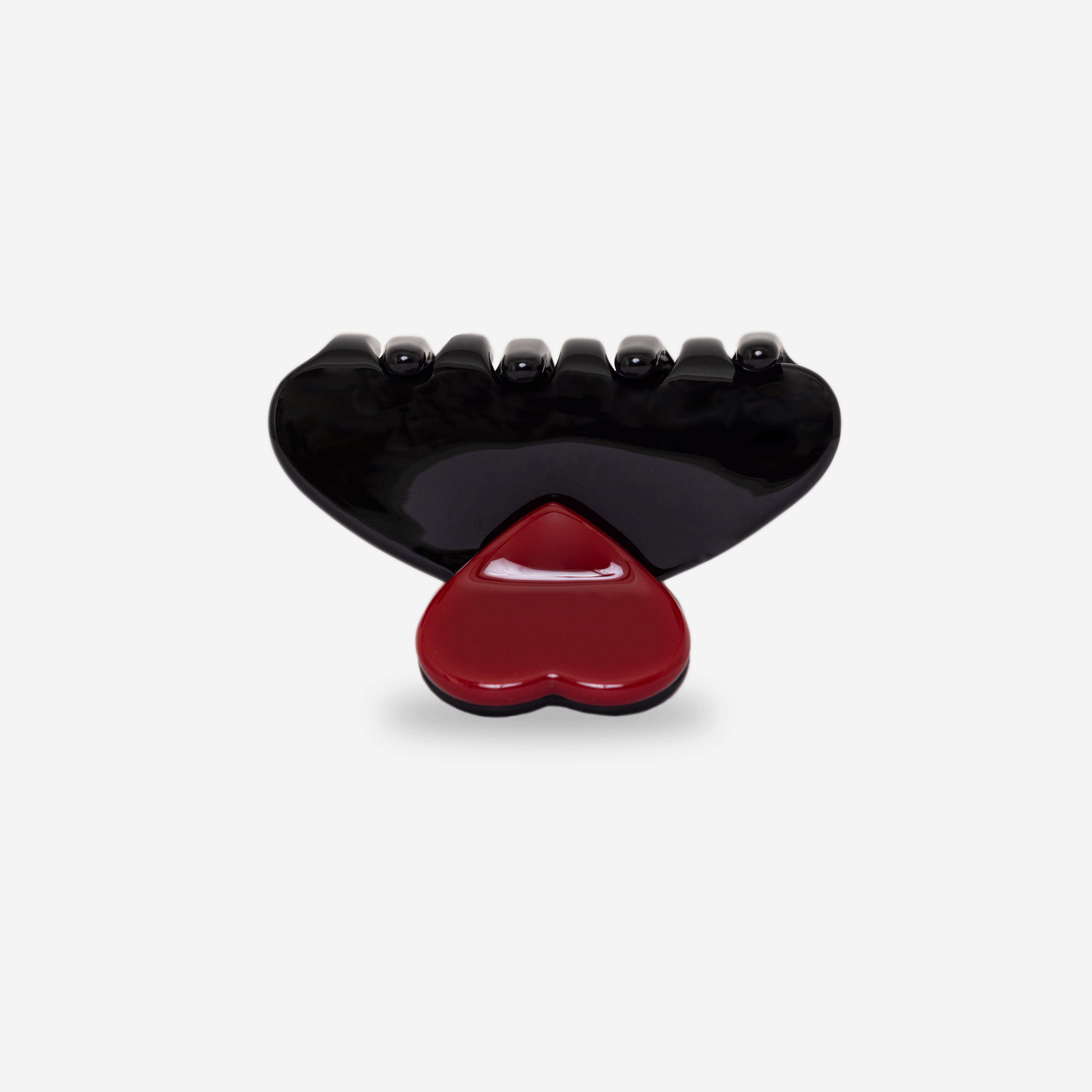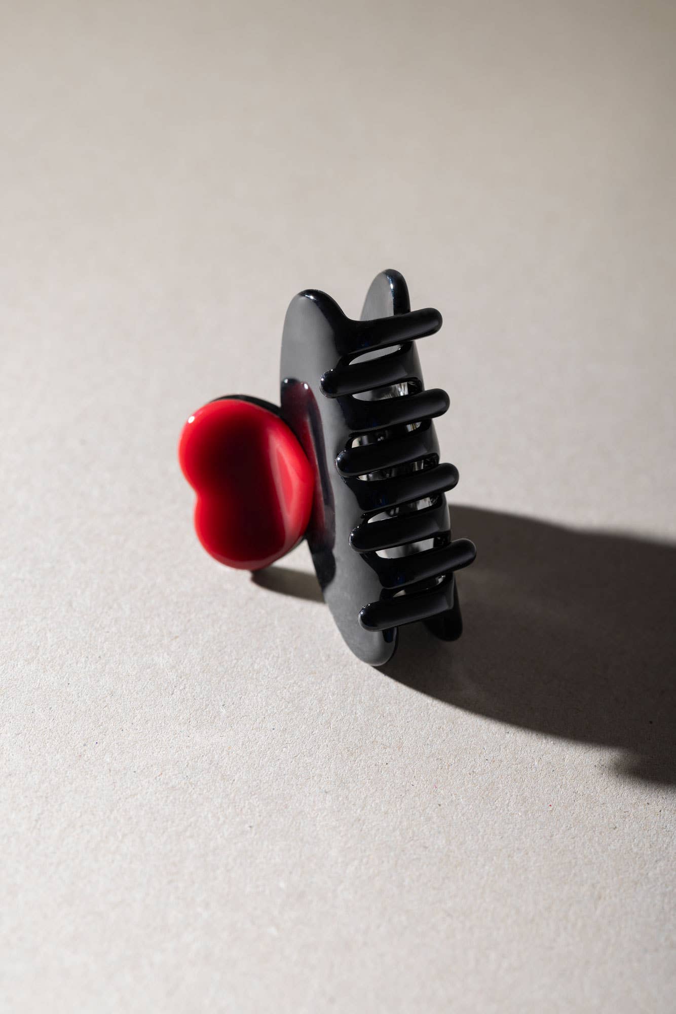 Met een krachtige combinatie van zwart en rood is deze haarclip een statement van passie en kracht. Het delicate hartontwerp, dat in deze diepe kleuren straalt, biedt een fascinerende mix van mysterie en intensiteit - Perfect voor degenen die hun liefde op elk moment willen tonen. Of het nu voor een speciale date is of een zelfverzekerde alledaagse look, deze clip houdt niet alleen je haar, maar ook je emoties vast.