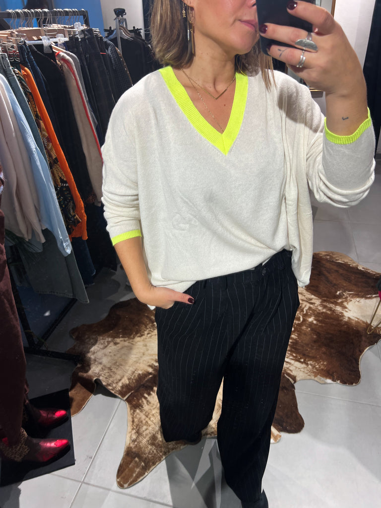 Embrace effortless style with the Jumper Ganu. Its oversized fit effortlessly flatters, hugging your arms while the rest drapes loosely—perfect for a casual chic look. Lightweight and comfy, it features a playful fluorescent detail that adds a pop of fun to your outfit. Ideal for tucking in or leaving loose, this jumper makes comfort and style a breeze.