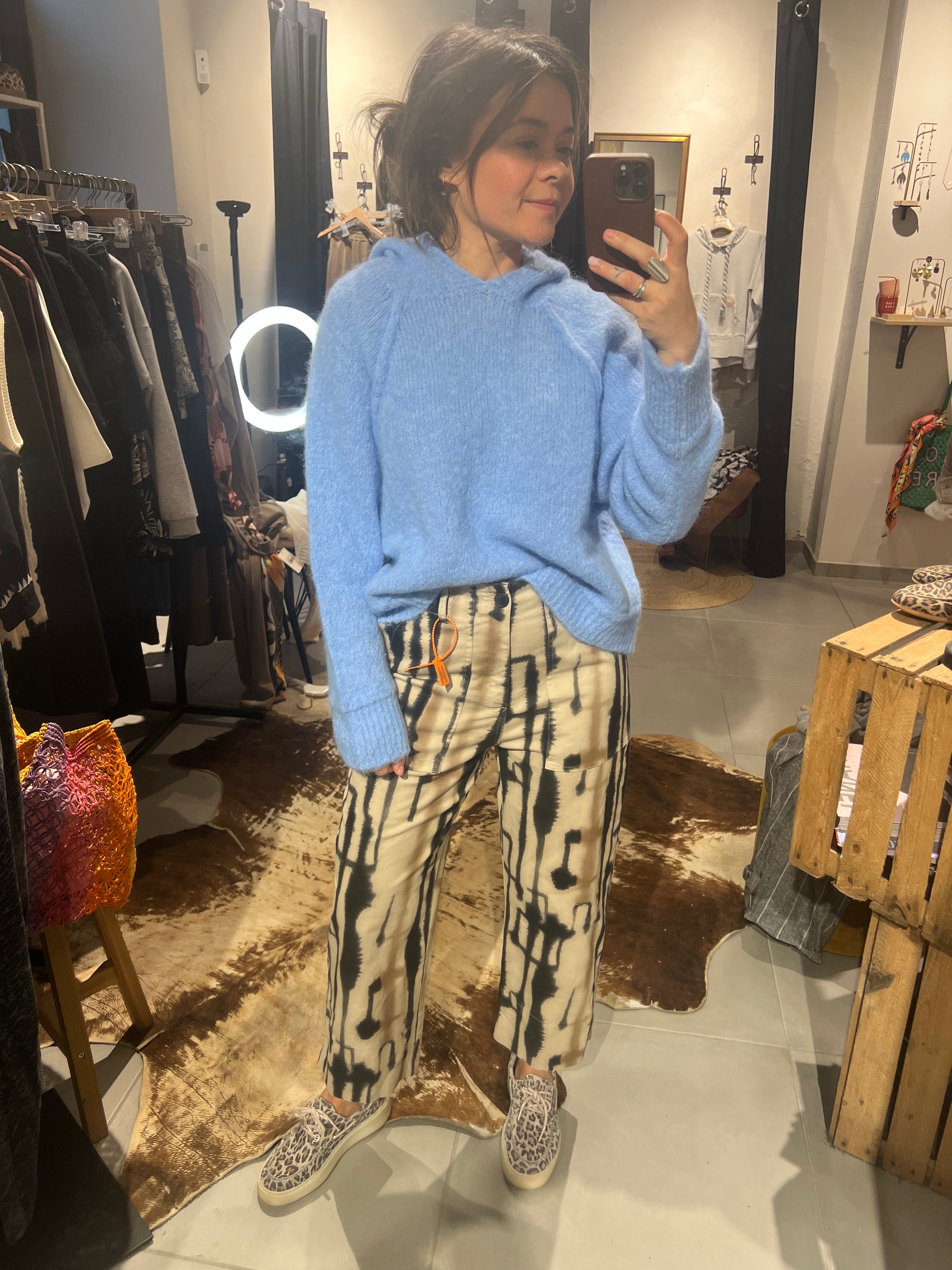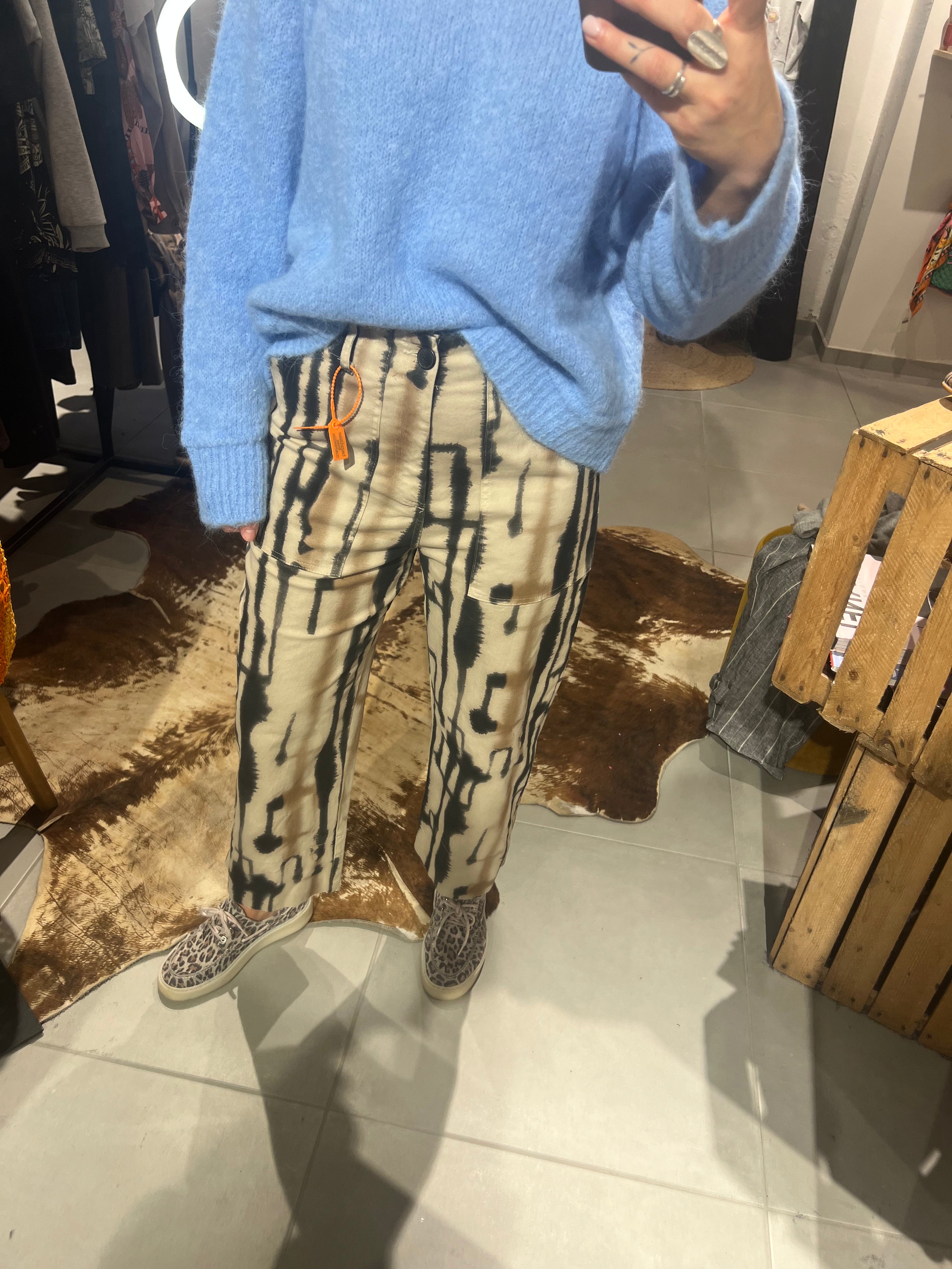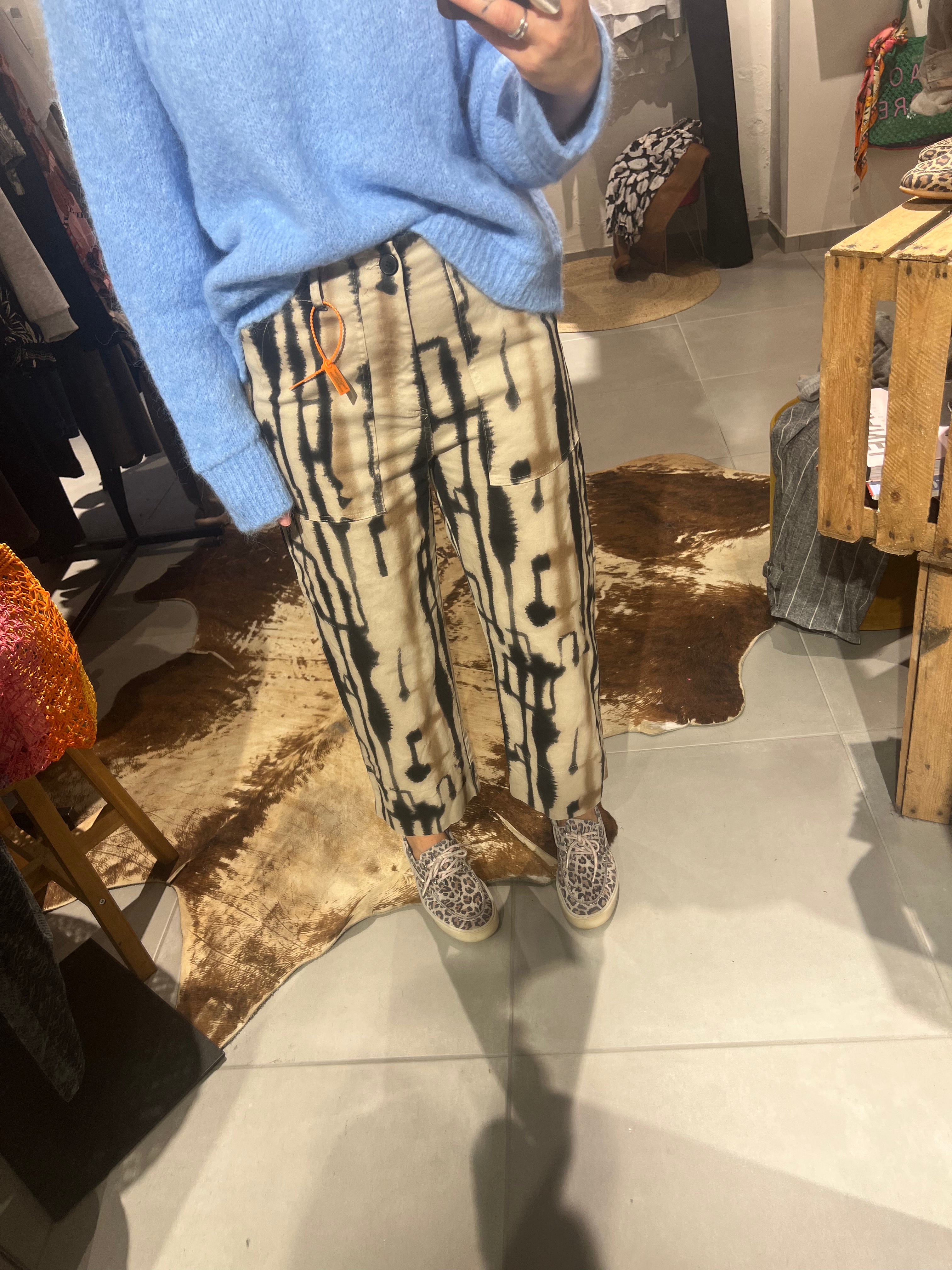 Discover effortless style with our Calatea Trousers, designed in a relaxed wide fit that moves with you. The striking black and sandy print brings an original, artistic edge to your everyday wardrobe. Perfect for those who appreciate understated sophistication with a creative twist. Versatile enough to dress up or down, these trousers are a chic essential for the modern woman.