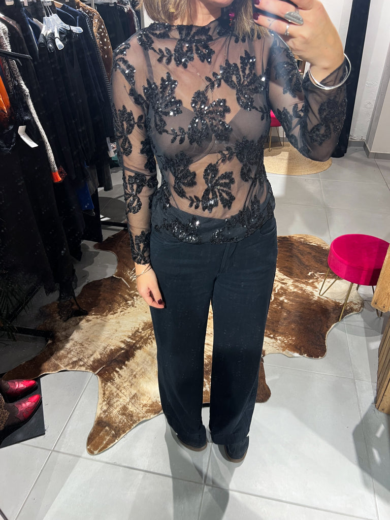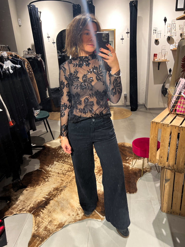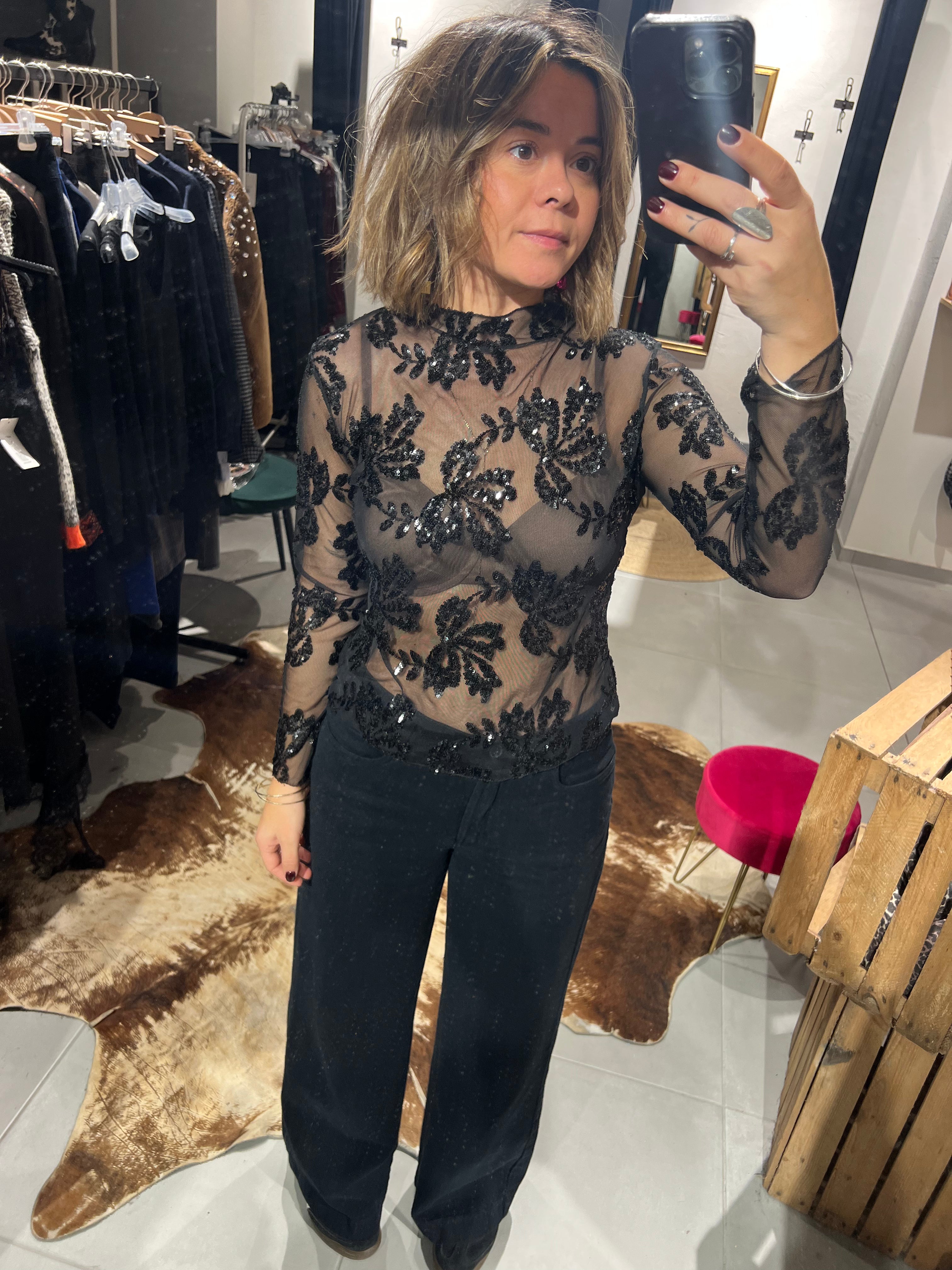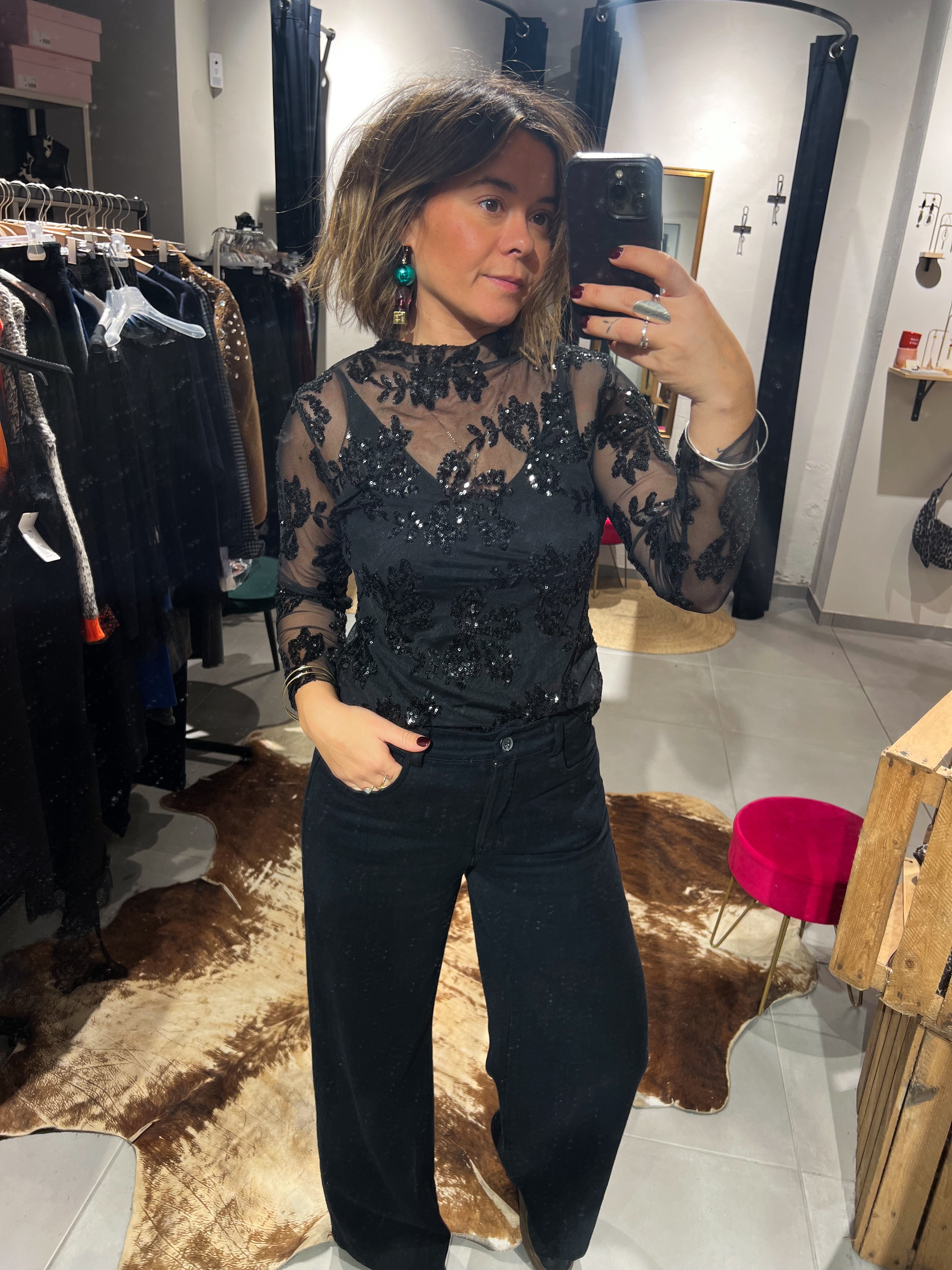 Découvrez la Blouse Amy, une pièce incontournable pour vos moments les plus glamour ! Ce top féminin en tulle délicat se pare de broderies florales scintillantes en sequins qui captent la lumière à chaque mouvement. Ses manches longues et son col arrondi ajoutent une touche d'élégance intemporelle, tandis que la matière aérienne crée une silhouette fluide et sophistiquée. Idéale pour les occasions spéciales, les soirées festives ou quand vous avez envie de briller. Disponible en tailles 36 à 42.