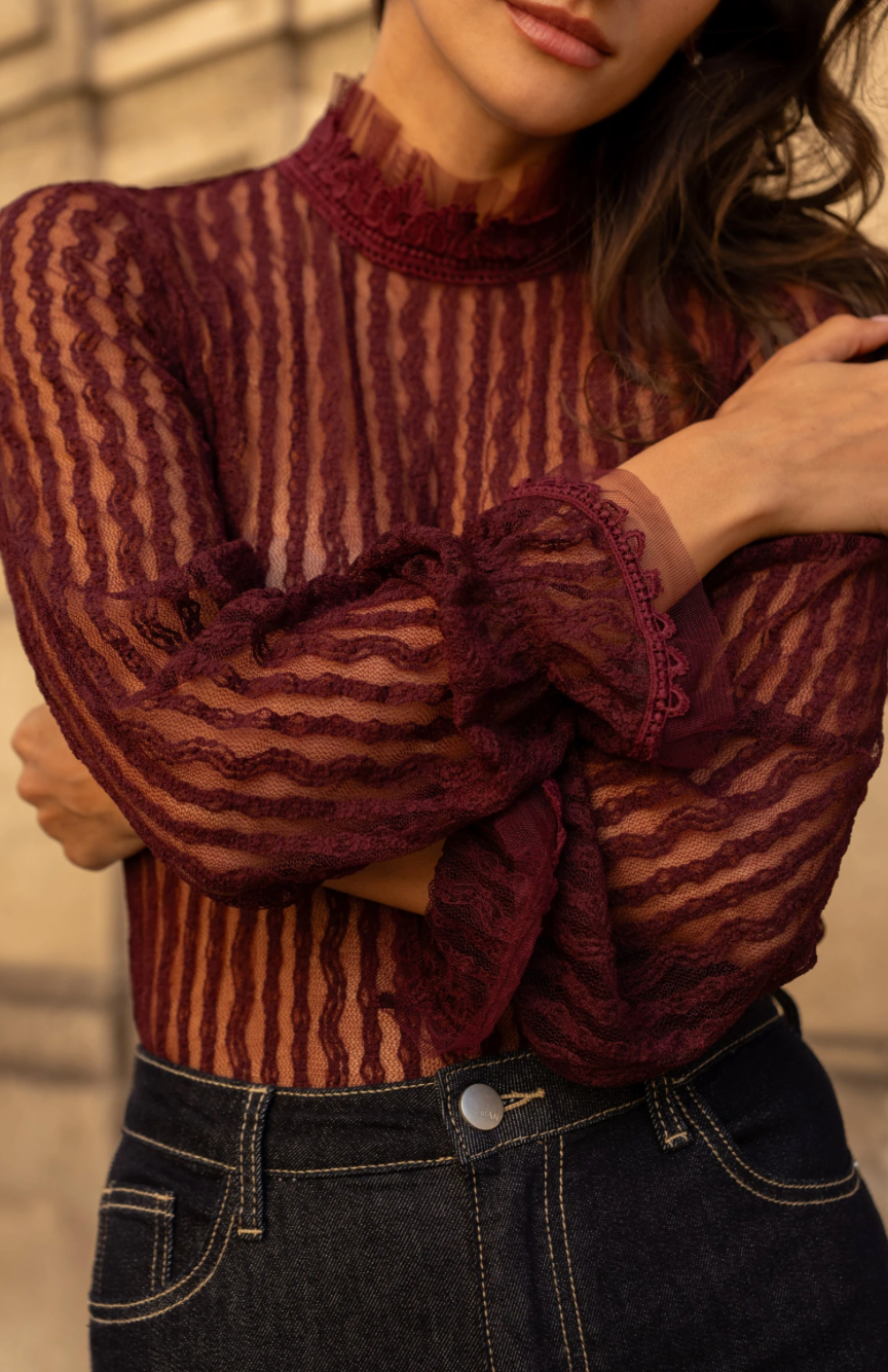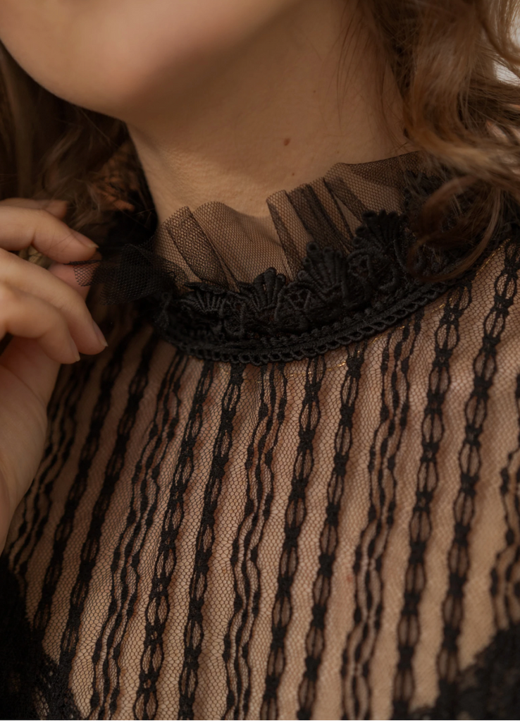 Découvrez la Blouse Kleo, notre pièce incontournable pour un style effortless et sophistiqué. Ce top col roulé en dentelle voile semi-transparente allie élégance et sensualité avec ses manches longues flatteuses. Parfait porté seul pour affirmer votre féminité ou en-dessous d'une robe pour plus de mystère, c'est votre nouvelle obsession mode. Une blouse qui joue les caméléons et s'adapte à tous vos looks !