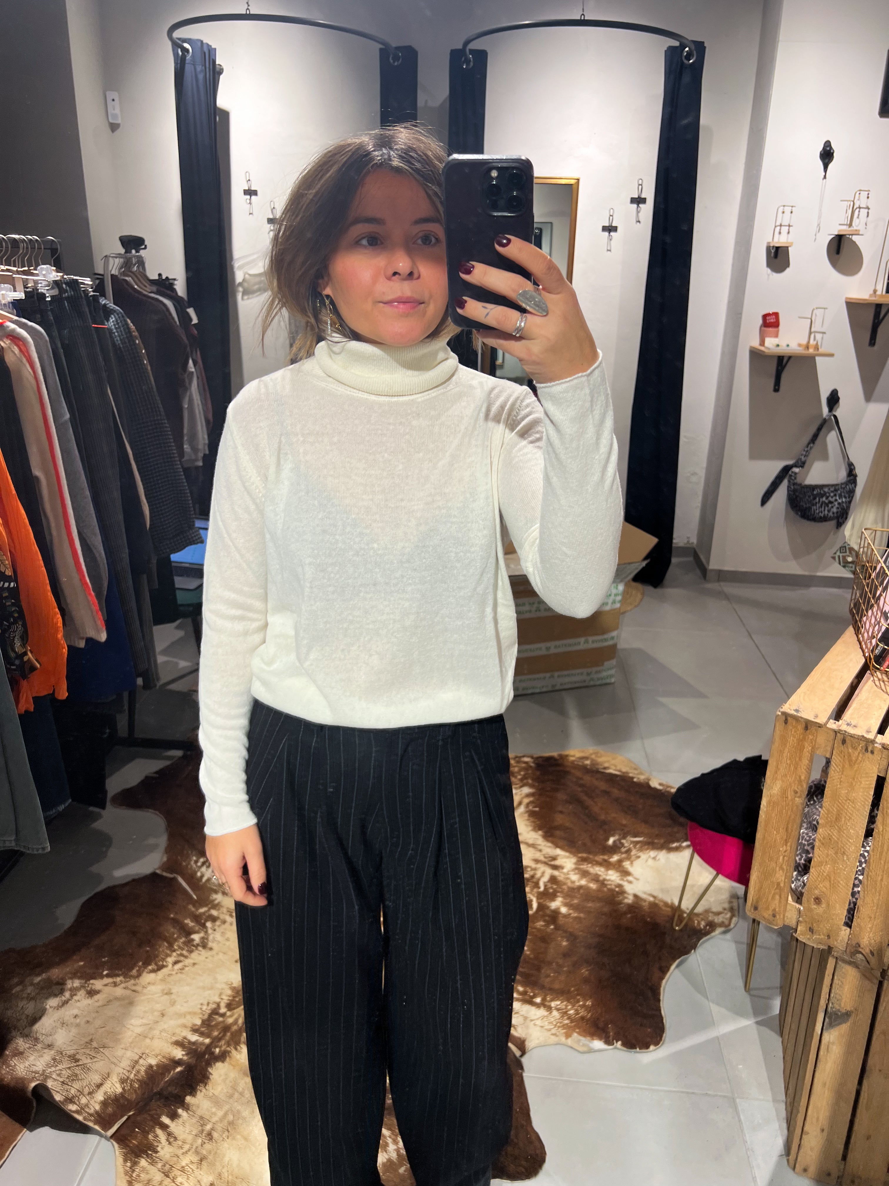 Jumper Tilla is your new lightweight essential for layering. This delicate turtleneck sits perfectly under any outfit, adding warmth without bulk. Crafted for comfort and versatility, it's the cozy companion your wardrobe has been waiting for. Perfect for those moments when you need just a touch more—layer it, love it, live in it.