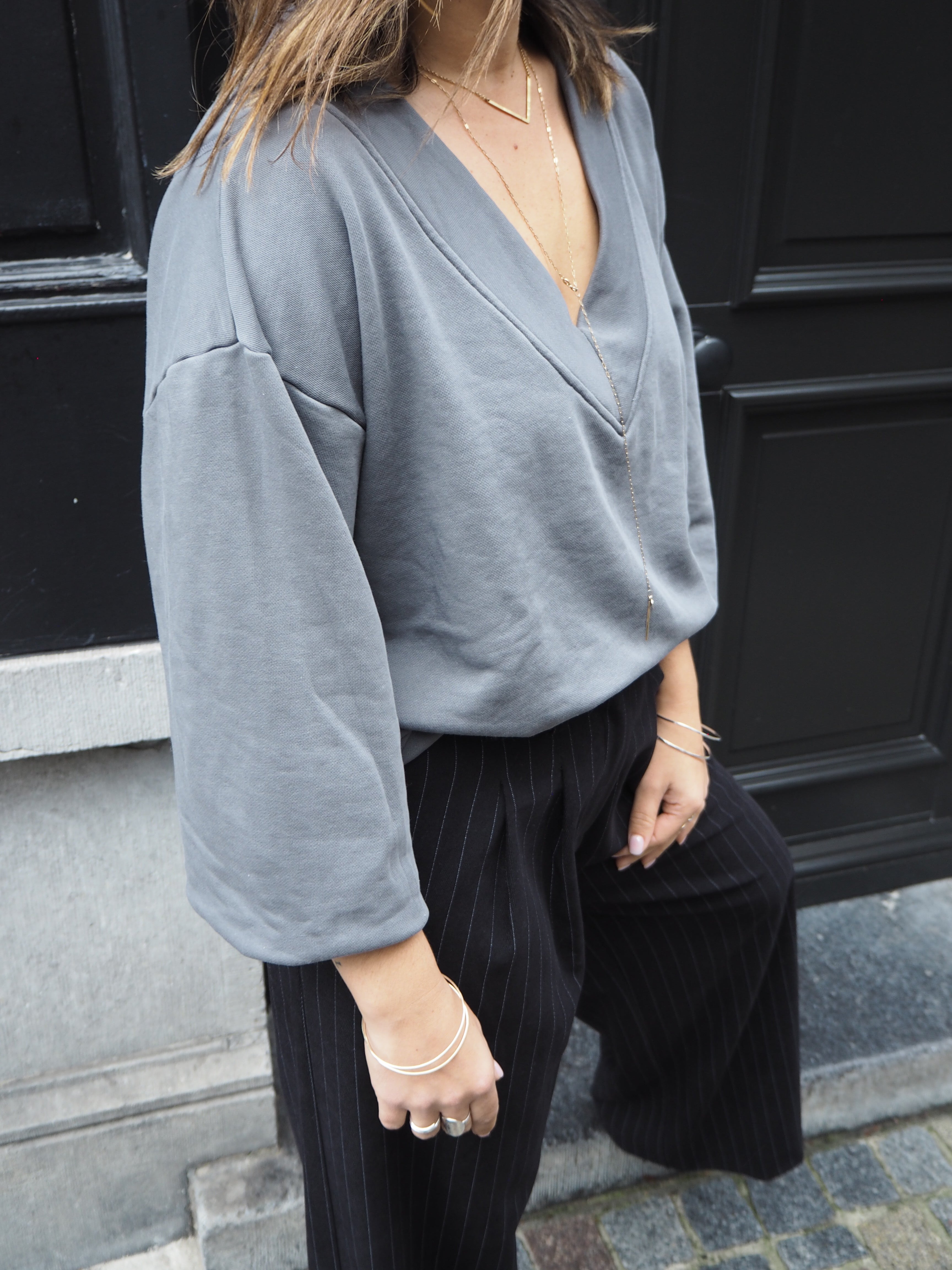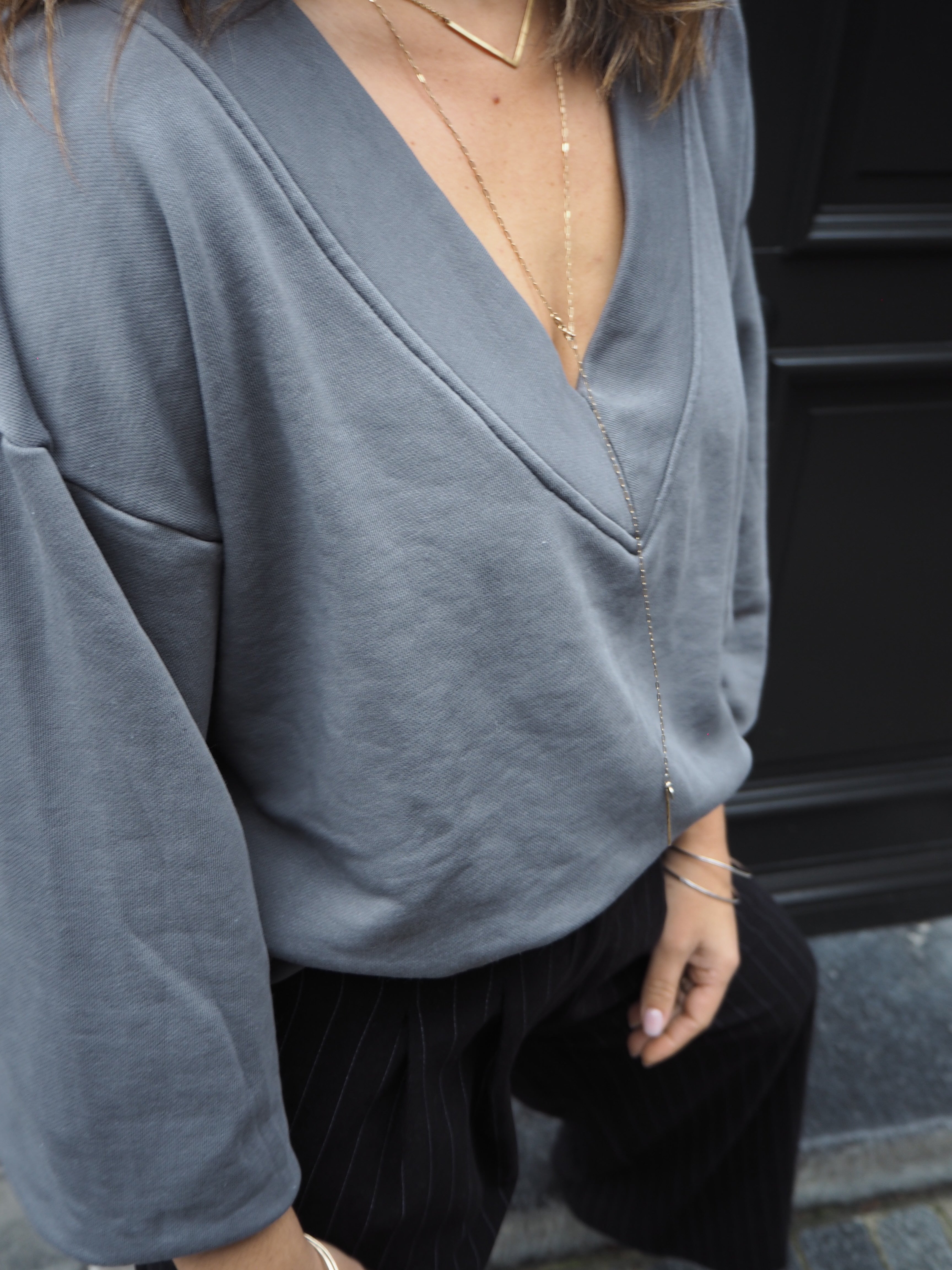 This sporty cropped sweater features a playful V-neck design perfect for layering or wearing solo. Its front-cropped cut adds a fun, modern twist to your casual look, making it ideal for active days or relaxed hangouts. Stay comfortable and stylish while showing off your cool, carefree vibe.