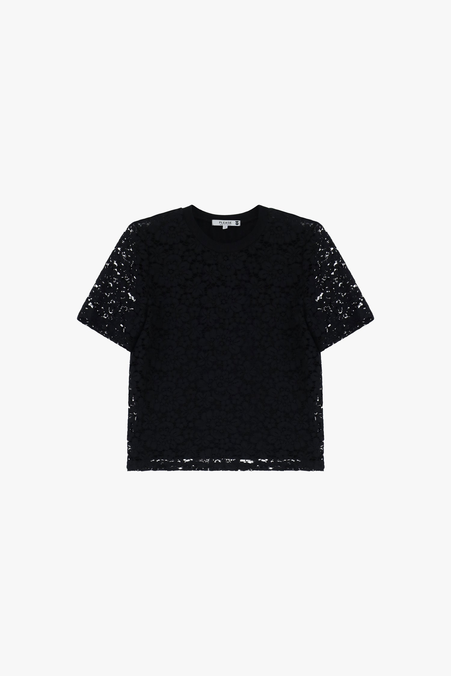 This playful short-sleeved t-shirt features a straight cut and an all-over floral lace pattern that adds a fresh twist to your city style. The crew neck keeps the look clean and versatile, perfect for mixing and matching with bold contrasts to spark creativity from day to night.